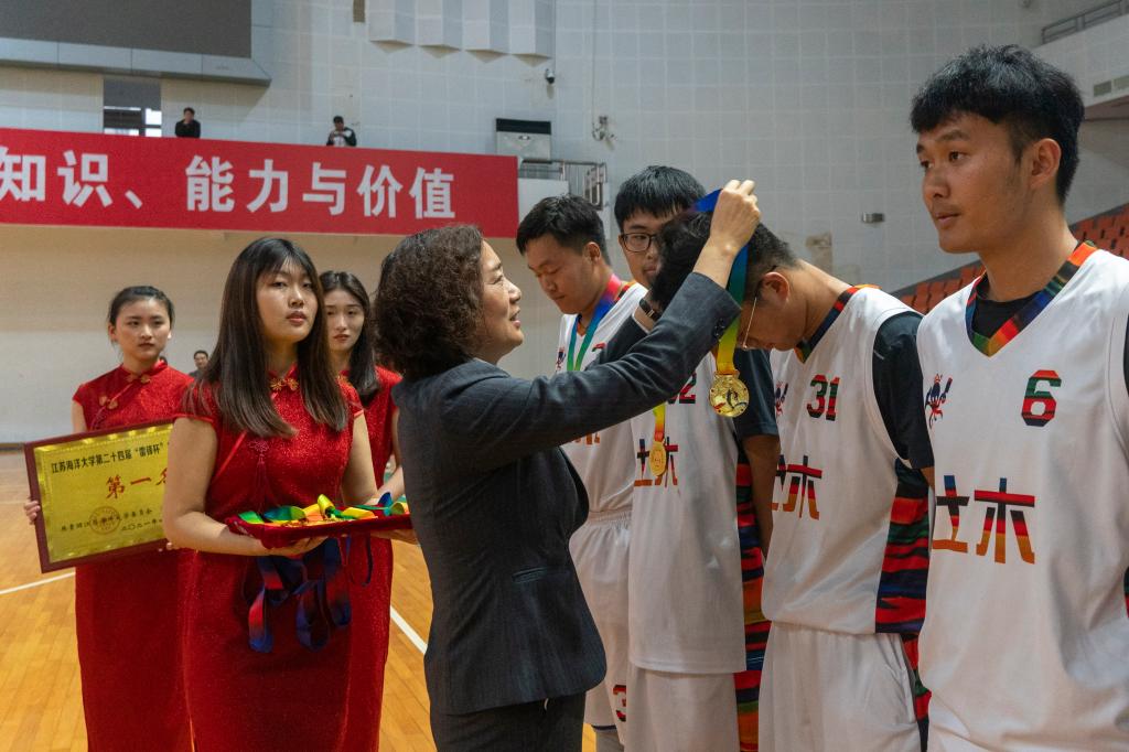 4月27日下午,由校团委、体育学院、校学生会联合举办的江苏海洋大学第二十四届“雷锋杯”学生男子篮球赛决赛在苍梧校区体育馆隆重举行,党委宣传部、体育学院、团委等部门出席比赛并为获奖学院颁奖,各参赛学院学生现场观看了比赛。