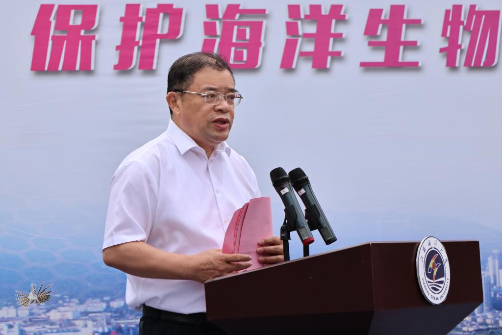 王自力向出席本次活动的领导和嘉宾表示诚挚的欢迎,并简要介绍了我校的发展历史、办学现状、发展蓝图等情况。王自力寄语全体师生保护海洋生态、增强海洋意识、传播海洋知识、弘扬海洋文化。