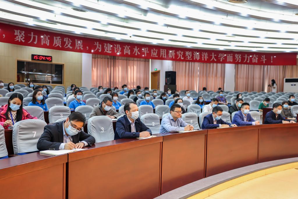 校党委书记王自力代表学校向广大青年送上节日的祝福。他回顾了过去一年我校共青团工作取得的成绩,并结合习近平总书记在考察中国人民大学时的重要讲话精神,对各级团组织和广大青年提出了四点要求:一是要做五四精神的传承者,在火热的社会实践中砥砺成长。青年大学生要牢固树立社会主义核心价值观,做到“勤学、修德、明辨、笃实”和“爱国、励志、求真、力行”;二是要有家国情怀,将“小我”融入国家和民族之“大我”。青年大学生要胸怀大局、心有大我,立鸿鹄之志,担时代之责,把个人的“小我”融入到实现“国家富强,民族复兴,人民幸福”的“大我”之中。将“小我”的奋斗,汇入时代的大潮之中;三是要紧跟时代步伐,做脚踏实地的奋斗者。青年大学生要谨记“海洋强国”的蓝色信念,激发矢志蔚蓝、报效祖国的澎湃力量,苦练本领、增长才干,以不竭“青春之力”增强“青春有我”的骨气,在百舸争流中劈波斩浪,在千帆竞发中勇立潮头;四是要聚焦主责主业,认真落实新时代党的青年工作方针。共青团干部要进一步提升工作的方位感、方向感,抓住建团百年有利契机,着力引导团员青年全面认知党领导青年运动的光辉历程,清醒认识自身肩负的历史使命,不断增强新时代有为青年的思想自觉和行动自觉。