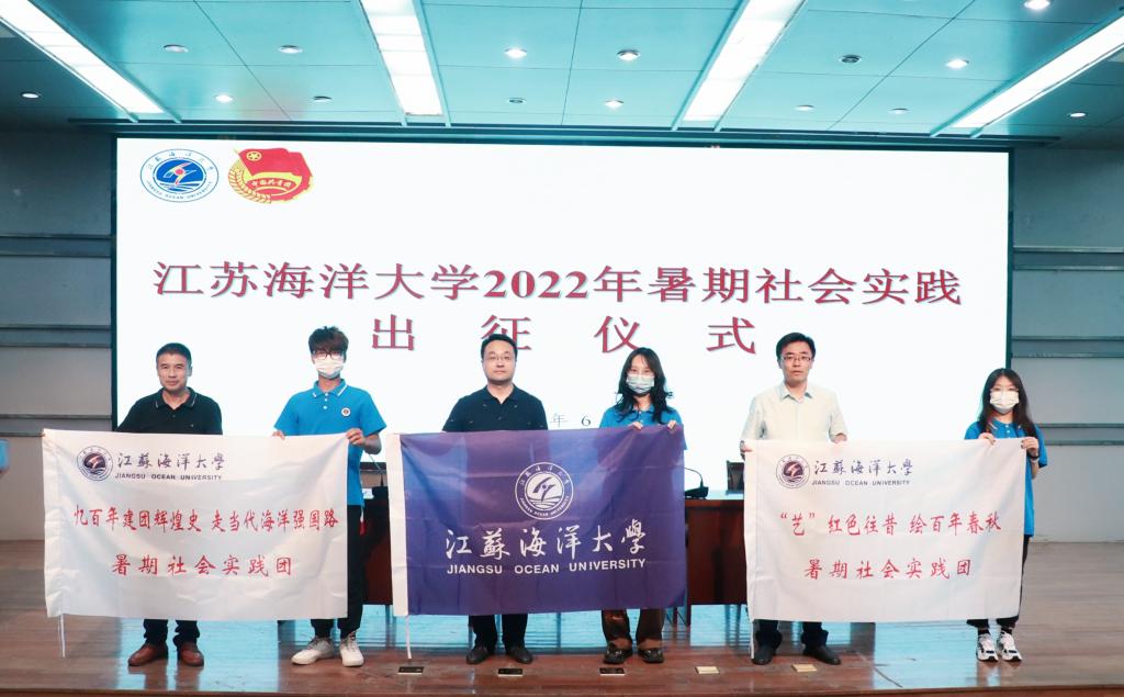 仪式上,党委宣传部副部长张兵宣读了《关于开展江苏海洋大学2022年大学生志愿者暑期文化科技卫生“三下乡”社会实践活动的通知》,党委研究生工作部副部长秦海波宣读了《关于表彰资助江苏海洋大学2022年优秀社会实践方案及重点团队的决定》。我校2021年全国暑期社会实践优秀团队代表、土木与港海工程学院2020级研究生李雪结合自身实践经历,分享了她的实践心得体会。随后,与会领导为暑期社会实践优秀方案获奖集体颁发证书,并为社会实践团队代表授旗。