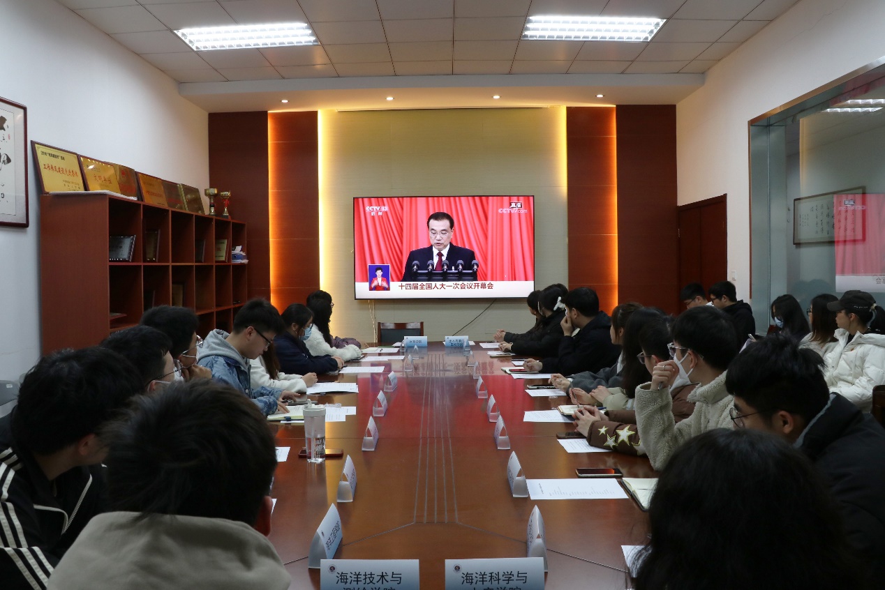 随后,与会学生共同观看了十四届全国人大一次会议开幕式,认真学习了政府工作报告,并结合自身学习和工作实际,畅谈学习全国两会精神体会。大家纷纷表示,要坚定不移听党话、感党恩、跟党走,争做有理想、敢担当、能吃苦、肯奋斗的新时代好青年。