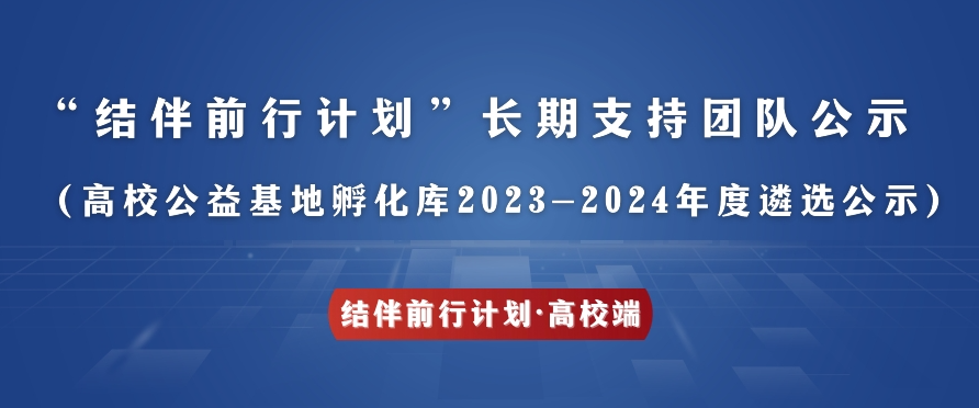 更好的公益慈善需要结伴前行。2019年10月,南京大学、南京航空航天大学等高校共同发起“高校公益基地”,实施“助学就业、创新创业、结伴前行”三大计划,并以“结伴前行计划”为抓手,以“结伴前行中心”为品牌运作主体,不断邀请新高校加入、发展幼小初高成为“结伴前行 友好学校”的同时,推动头部企事业单位、政府部门等与大学生结伴前行,共同“以所学、做深耕,研发高质量公益项目,并着重结合幼小初高实施”,有益升学就业创业的同时,启蒙公益的未来人。
