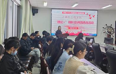 为深入学习宣传贯彻党的二十大精神,推进用习近平新时代中国特色社会主义思想铸魂育人,计算机工程学院团委于3月30日晚组织开展“理论+”领航宣讲团遴选活动。
