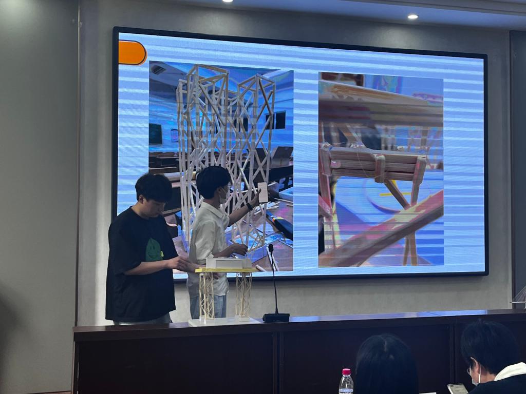 大赛流程上,评委们通过成员汇报、评委提问、现场答辩等环节对参赛作品进行评分。各个参赛队伍对自己作品的建筑力学概念、结构概念、创新思维等多方位进行阐述,力求全面展现自己的设计成果。评委们根据作品的观赏及实用价值,从节能减排、循环经济等多角度进行考量,并经过公正的讨论与评分,最终评选出一等奖2项、二等奖4项、三等奖12项。