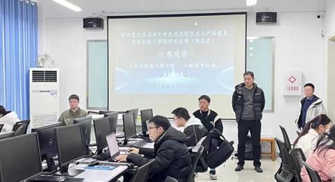 11月26日上午9时,第四届江苏海洋大学先进成图技术与产品信息建模创新大赛院级选拔赛(建筑类)在土木楼四楼机房举办。比赛由土木与港海工程学院团委及工程图学协会承办,来自土木与港海工程学院、机械工程学院、海洋与测绘学院等100余名同学报名参赛,由指导教师黄德龙、宋洪强和窦启轩老师负责监赛。