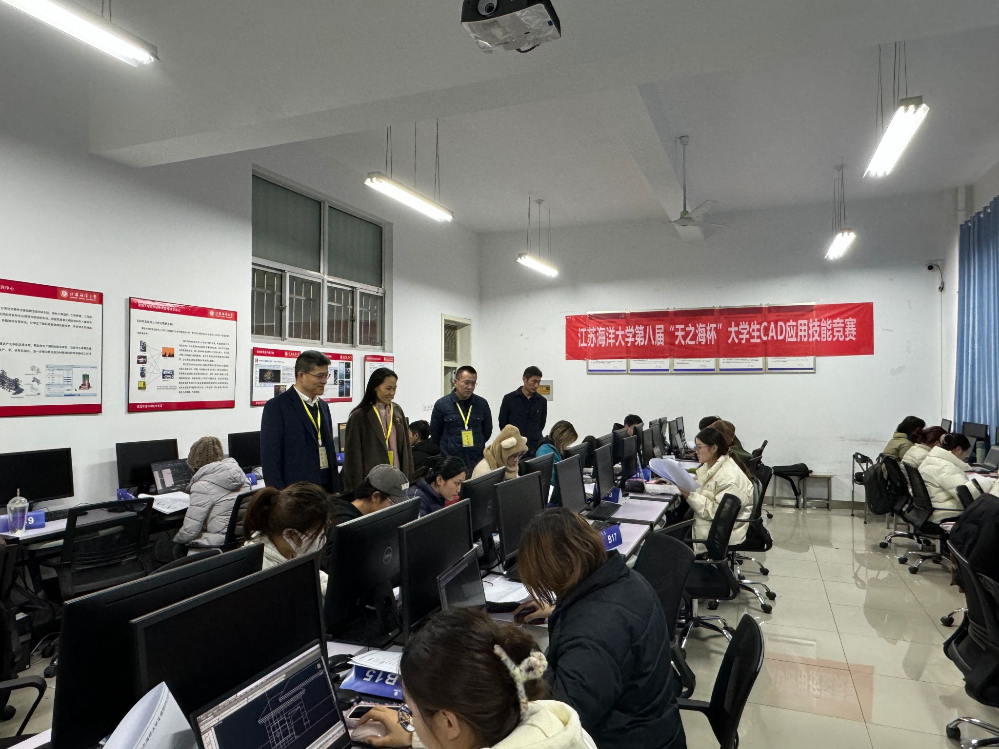 为了培养大学生的创新思维和CAD应用技能以及分析、解决实际问题的能力,普及CAD成图技术,提高学生的综合素质,并选拔出优秀人才参加第十四届华东区大学生CAD应用技能大赛,12月10日在土木楼四楼机房举办江苏海洋大学第八届“天之海”杯大学生CAD应用技能竞赛。本届校级竞赛由校友天之海建设有限公司石勇先生赞助举行,土木与港海工程学院团委主办,学院党委书记王改红、院长宗钟凌、副院长朱文谨、党委副书记魏学庆亲临比赛现场指导工作。