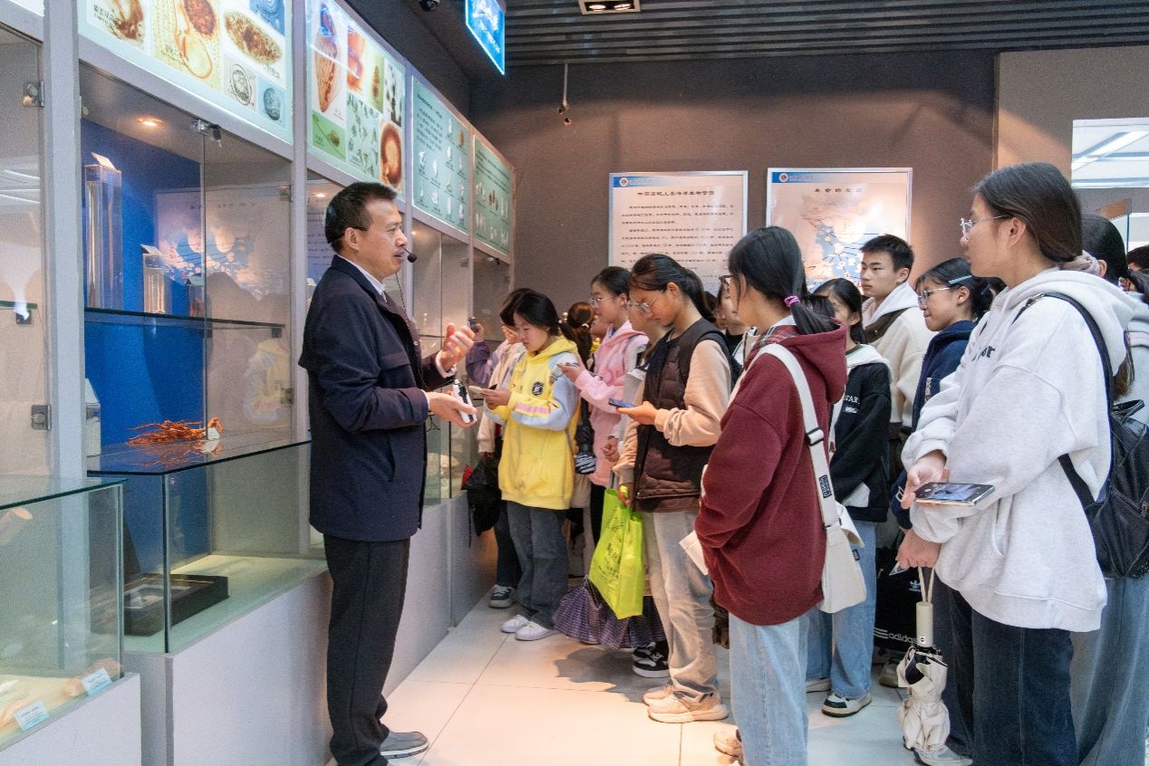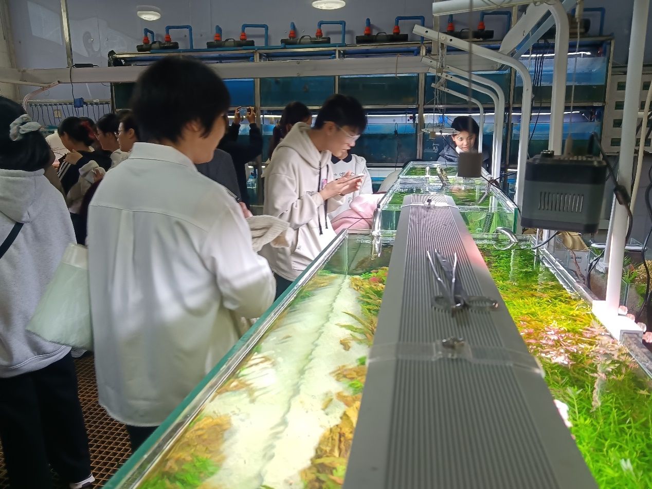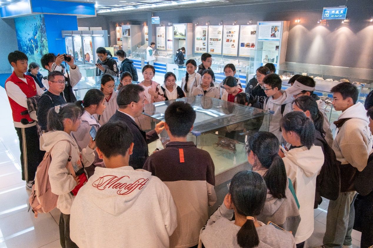 海洋科学与水产学院实验中心高级实验师李士虎老师发挥专业优势,声情并茂地为学生进行海洋生物知识讲解,重点介绍了我国一级保护鱼类中华鲟的生长、发育、生殖洄游等习性。大闸蟹的生长、发育及与中华鲟相反的生殖洄游。同学们无不听得聚精会神,他们努力吮吸着海洋知识,沉浸在海洋世界,感受海洋之美。