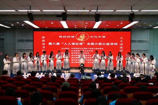 4月25日下午,第八届“人人读论语”全国大型公益活动于我校苍梧校区艺术楼报告厅成功举行。本次活动由文法学院与中华传统文化诵读工程连云港组委会联合主办,今年的“4·23”是第30个世界读书日,本次活动旨在借助节日营造的气氛,在传承中华优秀传统文化同时,为打造书香校园奠定基础。