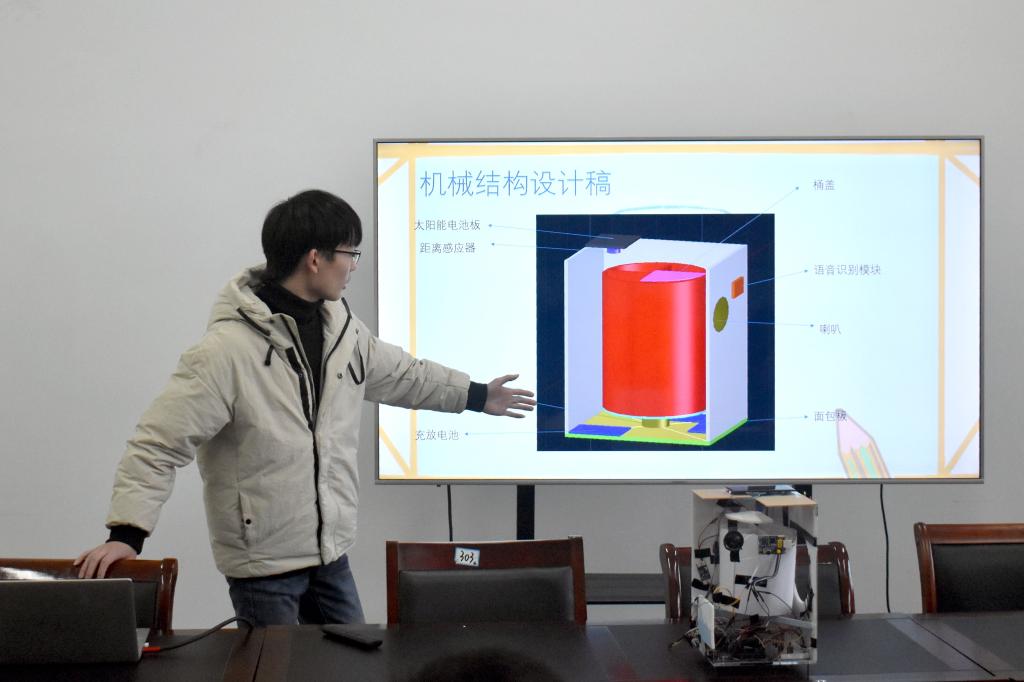 自通知发布以来,竞赛吸引了众多同学的积极参与,最终有16件作品进入本次决赛。竞赛主要包括选手展示和评委提问两个环节,经过近4个小时的激烈角逐,产生一等奖、二等奖各2项,三等奖4项,优秀奖8项。计算机工程学院的“面向垃圾分类回收的自动化破袋装置与系统”项目和电子工程学院的“基于Arduino的智能垃圾分类模型”项目获得一等奖。