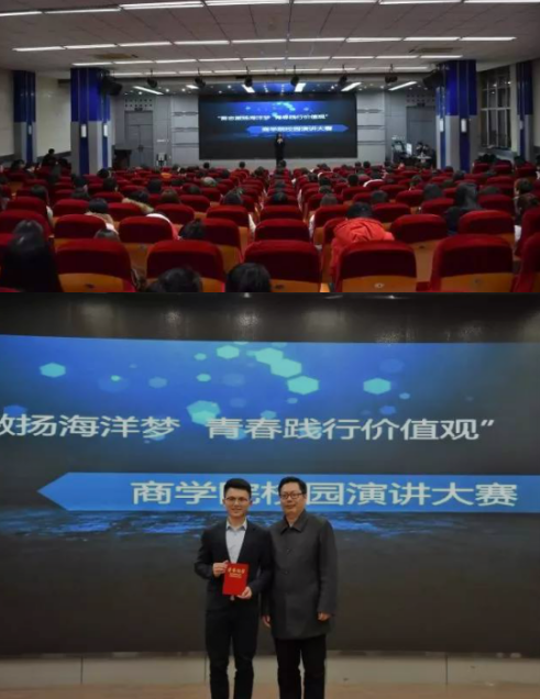 为深入贯彻落实科学发展观,引导在校大学生了解和掌握社会主义核心价值观的基本内容和实践要求。商学院于2017年3月29日19:00在苍梧校区艺术楼报告厅举行了“吾志激扬海洋梦 青春践行价值观”校园明辨会演讲比赛。本次活动邀请的是商学院党委副书记、副院长张振松,学工办主任徐建芬,辅导员李淑华、苏成兄、叶舟。