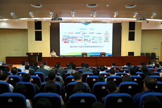 在习近平总书记在网络安全和信息化工作座谈会上的讲话发表一周年之际,4月20日下午,我校特邀连云港市委常委、宣传部长滕雯来校,在会议中心黄海厅作了主题为《讲创新、善引导——用多彩的表达打造多声部的网络传播矩阵》的辅导报告。校党委副书记、纪委书记史顺良主持报告会,校领导宁晓明、舒小平、王洪法出席报告会。