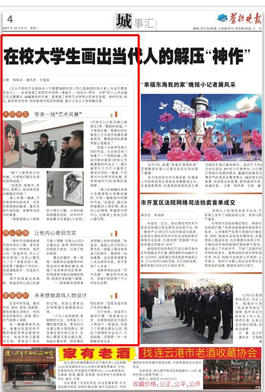 刚开始准备这场画展,张猛还担心自己的画不被人理解。但是从12月2日展出后,老师、同学对他的鼓励与肯定,打消了他的顾虑。