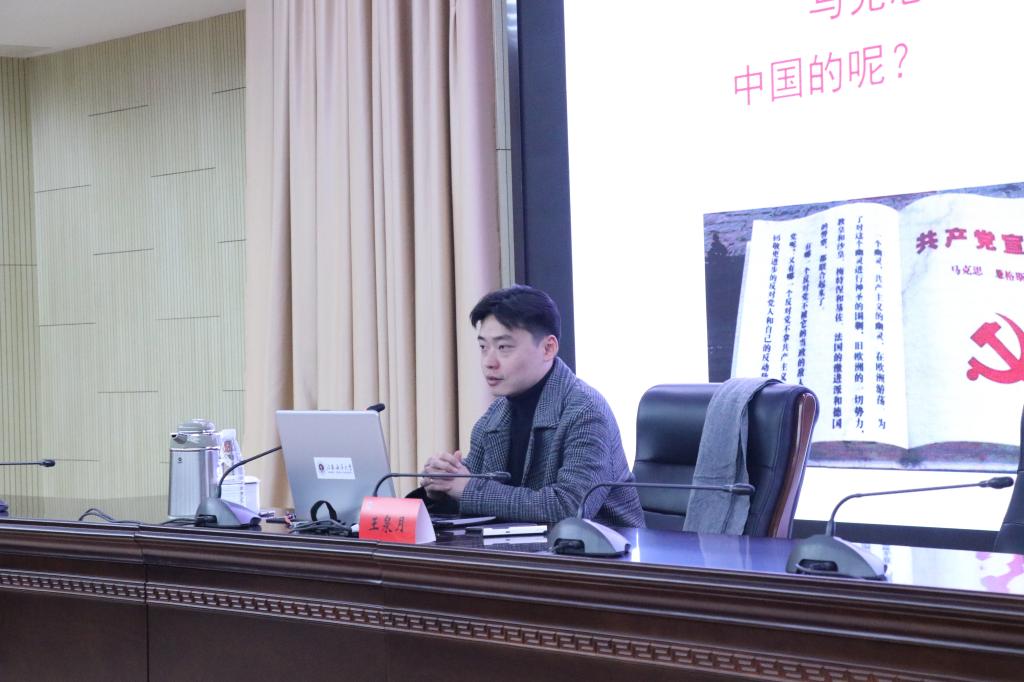 11月30日,由校团委举办的“青年马克思主义公开课”在会议中心黄海厅开课,马克思主义学院青年博士王泉月老师讲授了“马克思主义为什么行”的公开课,青马班学员300余人参加了公开课。