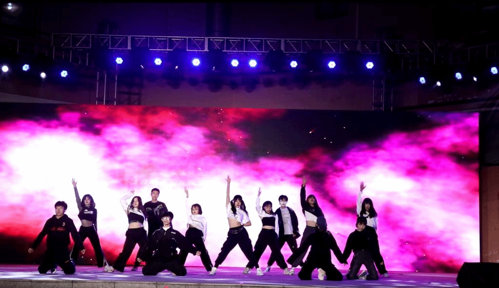10月31日,由校团委主办、连云港市DN街舞社承办的连云港市首届大学生街舞作品艺术展演暨江海大劲舞队20周年晚会在第四食堂广场举行。出席此次活动的有历任团委负责同志和相关指导教师,副校长金芙蓉向本次晚会发来祝福视频。从全国各地返回母校的历届大学生艺术团劲舞队队长和部分校友与数百名学生共同观看了本次晚会。