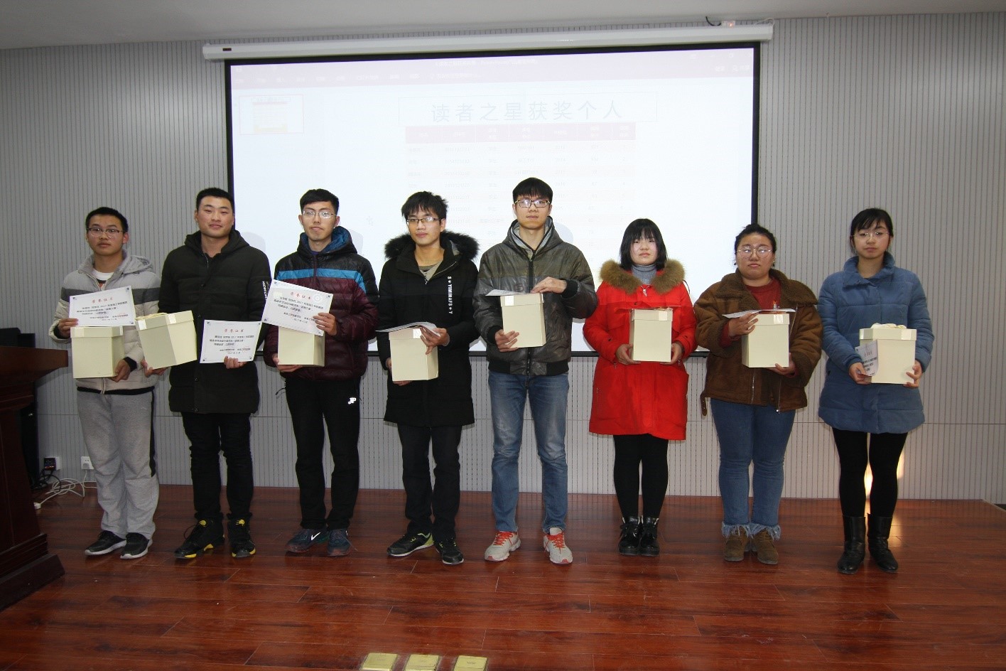 12月18日下午,江苏海洋大学首届读书节闭幕式及颁奖仪式在图书馆东馆三楼多功能报告厅举办。文学院党总支副书记田德勇、计算机学院党总支副书记兰巍、校团委副书记朱小明、图书馆党政领导及获奖学生参加了闭幕式。