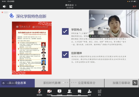 2023年1月5日下午,江苏海洋大学学生会2022年度优秀分会评比通过腾讯会议线上开展。学生工作部、团委负责同志及教师担任评委,各学院学生会指导老师和成员在线观看。