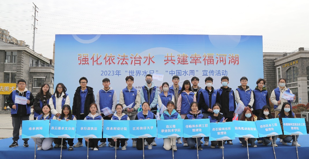 2023年3月22日是第三十一届“世界水日”。为强化全社会依法治水责任意识,形成社会各界惜水、爱水、护水、节水意识,3月25日上午,连云港市水利局在东沿河美食水岸开展了“强化依法治水,共建幸福河湖”2023年世界水日、中国水周宣传活动。江苏海洋大学青年志愿者协会组织志愿者参与此次活动。