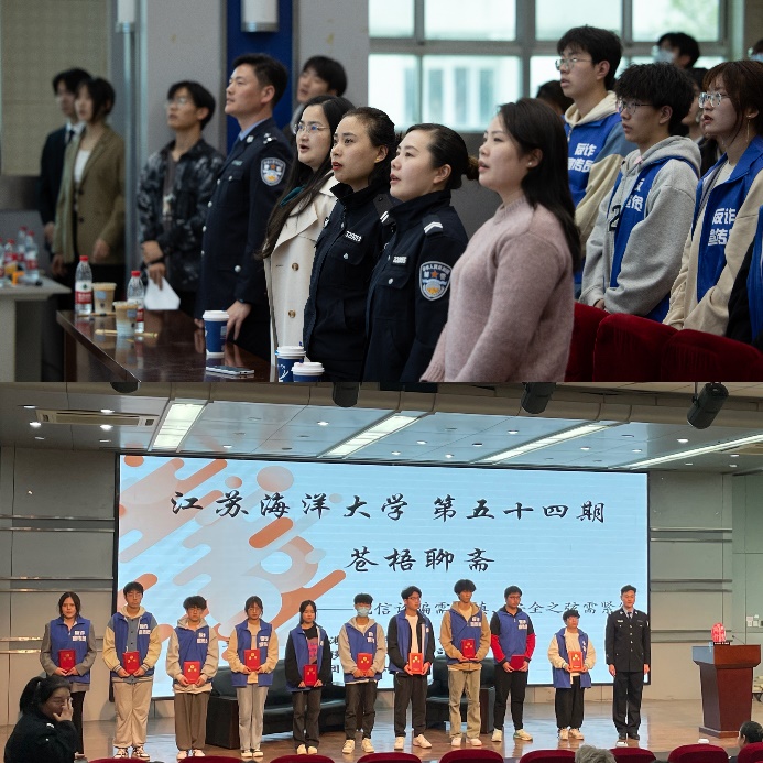 为进一步加强我校防诈骗教育,保障全体师生财产安全,2023年4月12日下午,江苏海洋大学第五十四期《苍梧聊斋》于艺术楼报告厅举行。活动邀请郁州派出所副所长任海洋、民警相星宇及连云港移动工程维护部张涛主讲,采取线下分享和线上直播的方式进行。