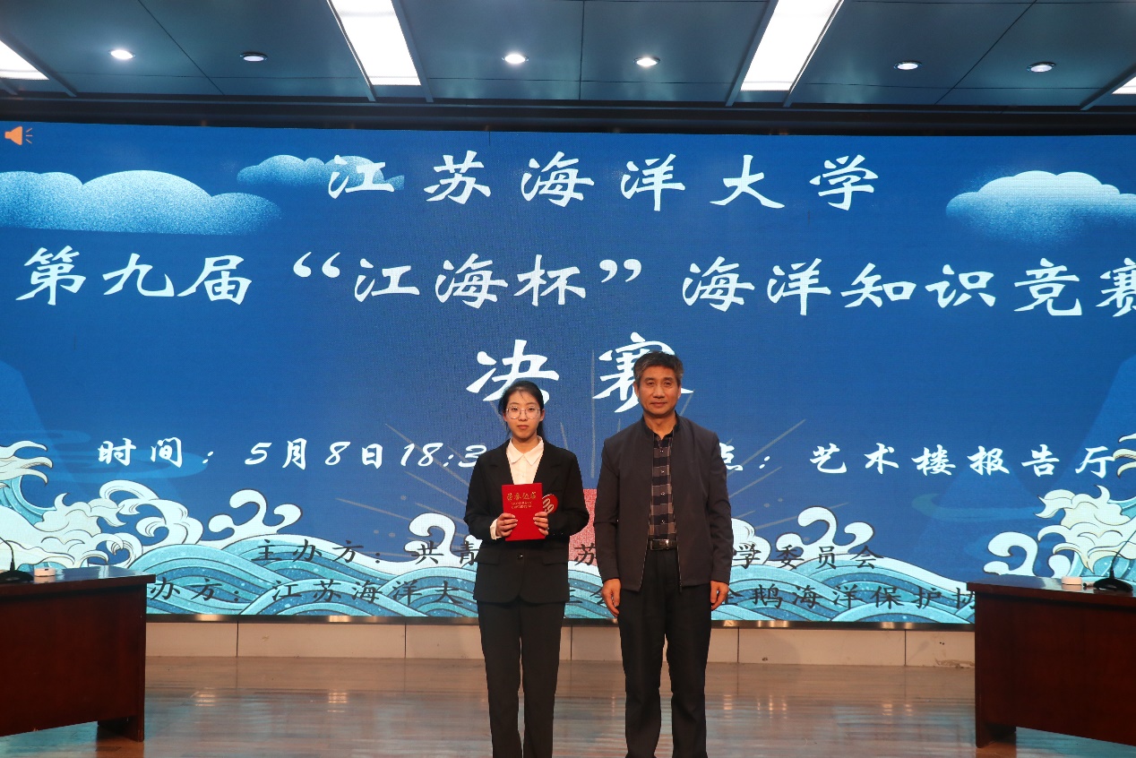 为更好营造浓郁的海洋特色校园文化氛围,弘扬学海知海爱海的校园文化主旋律,5月8日晚,由江苏海洋大学学生会、小企鹅海洋科技保护协会合作举办的第九届“江海杯”海洋知识竞赛决赛于艺术楼报告厅顺利进行。比赛邀请海洋科学与水产学院党委副书记朱小明、副院长吴亚平、李联泰教授、海洋科学系教工党支部书记蔡月凤以及系主任姬南京担任评委。