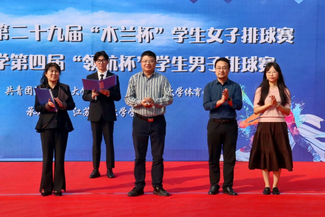 10月18日下午,由校团委、体育学院联合举办的我校第二十九届“木兰杯”学生女子排球赛暨第四届“领航杯”学生男子排球赛开幕式在苍梧校区排球场顺利举行,校党委常委、副校长朱国军,体育学院党总支书记张萍,校团委书记黄吉庆、副书记黄媛及17个学院排球队队员和观众参加了开幕式。