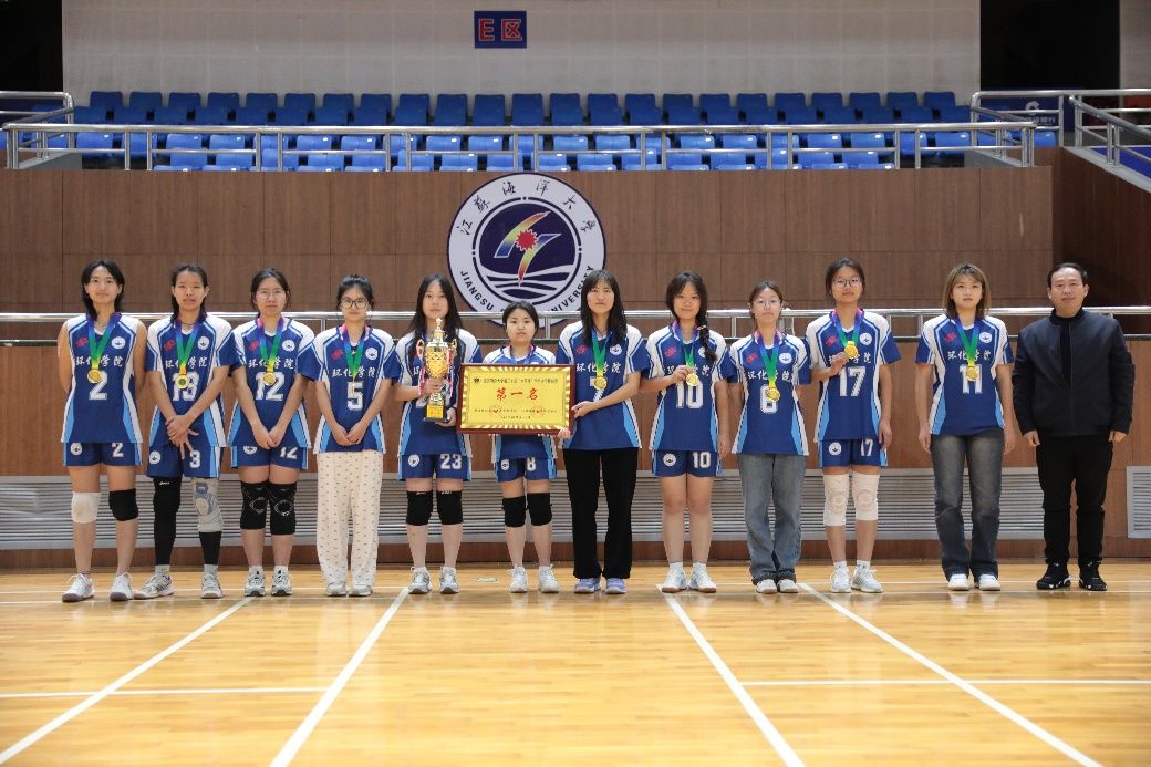 决赛现场,各学院领导、老师们纷纷带领工作人员、观众为参赛选手提供全方位的支持与鼓励。随着清脆的哨声响起,女子排球决赛正式拉开了激动人心的大幕。只见选手们个个全神贯注,凭借精湛的球技与默契的配合,在赛场上你来我往,演绎了一场场扣人心弦的比赛。每一次攻防转换,完美地诠释了体育竞技的激情与独特魅力,也淋漓尽致地展现了运动员们不畏强敌、奋力拼搏的飒爽风采。最终环境与化学工程学院摘得桂冠,商学院荣获亚军,文法学院获得季军。