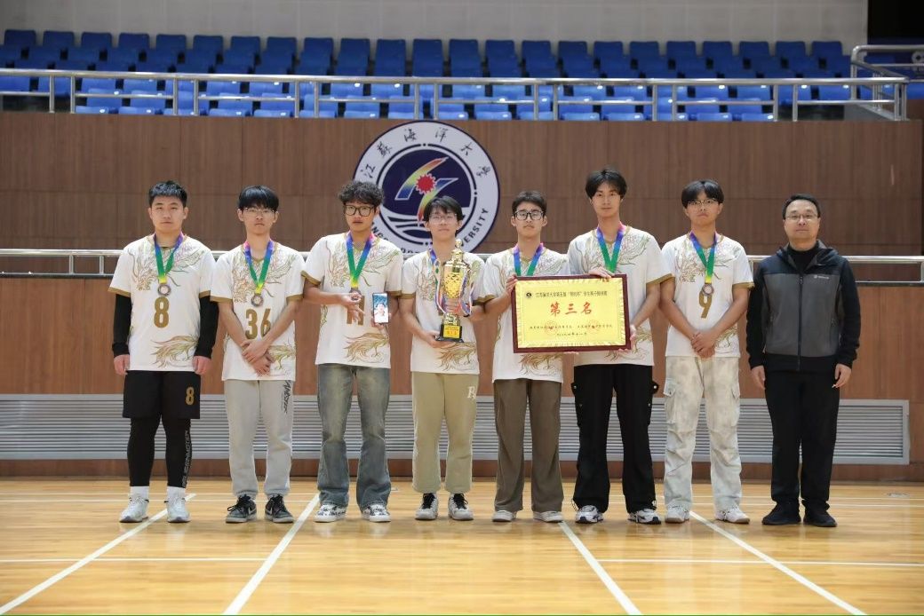 男子排球决赛同样精彩非凡。选手们斗志昂扬,眼神坚定,每一滴汗水都凝聚着对胜利的渴望。发球时力量十足、角度刁钻;接球时沉稳冷静、反应敏捷;跳跃时身姿矫健、高高跃起;扣杀时势大力沉、锐不可当;反击灵活应变、毫不慌张。观众的热情也被点燃,加油声、呐喊声此起彼伏,响彻整个体育馆,将现场的热烈气氛一次次推向高潮。最终,电子工程学院夺得冠军,环境与化学工程学院荣获亚军,理学院获得季军。此外,海洋技术与测绘学院和艺术设计学院在比赛过程中秉持着良好的体育道德风尚,尊重裁判与对手、遵守规则、配合组织方安排,荣获道德风尚奖。