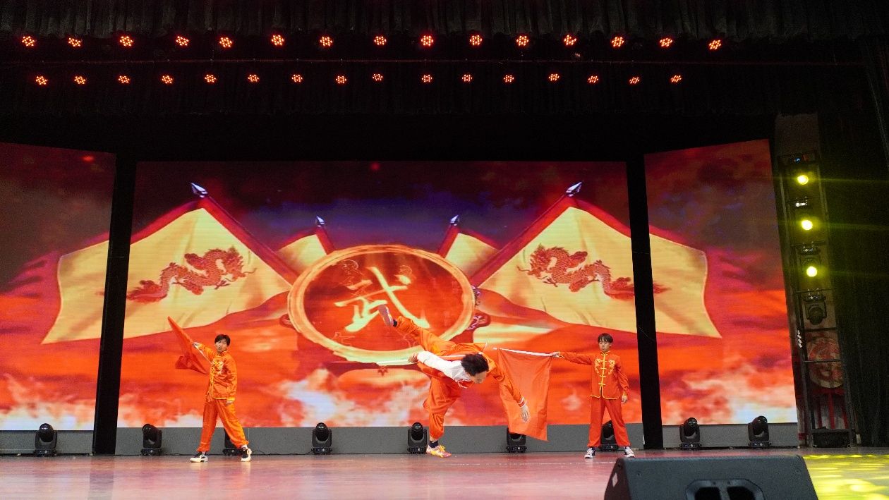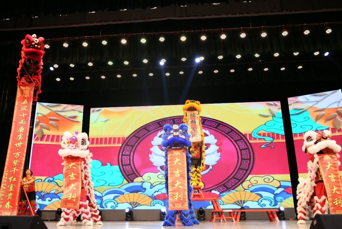 舞龙舞狮协会带来的《祥狮送福》将晚会推向高潮,六头祥狮踏鼓腾跃,领队醒狮飞身跃上三米高桩,狮口吐出的“文化兴邦”烫金对联引发全场欢呼。幼狮穿梭观众席,同学们争相抚摸狮头璎珞,欢呼声此起彼伏。