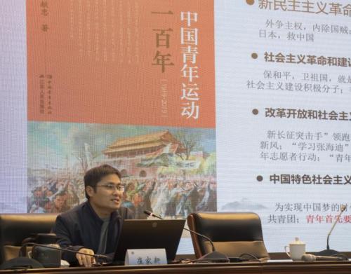 马克思主义学院副院长崔家新以“学习习近平总书记关于青年工作的重要思想”为主题,结合新时代青年工作需求,阐释这一思想的核心价值,明确年轻团干部需以“有理想、敢担当、能吃苦、肯奋斗”为行动标尺,以习近平新时代中国特色社会主义思想为指引,主动深入青年群体,聚焦学业、生活等实际难题,切实为青年排忧解难,同时坚决去“四化”、强“三性”,以实干践行使命,争做社会主义建设者和接班人。