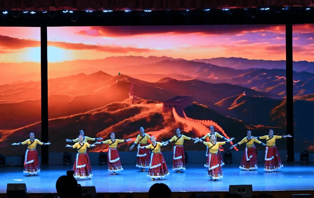 晚会以“传承中华文化,彰显时代风采”为主题,分为“云起·东方”“潮涌·万象”“花开·盛世”三大篇章,通过多元艺术形式,生动诠释了中华文化的深厚底蕴与时代张力。一曲器乐合奏《美丽的神话》如清泉流淌,拉开晚会序幕,瞬间将观众带入缥缈悠远的东方秘境。随后,退休老教师艺术团带来藏族舞蹈《再唱山歌给党听》,舞姿质朴而深情,传递出对生活的热爱与对信仰的坚守。武术协会震撼登场,拳风破空、棍影成幕,尽显中华武术的雄浑气魄,折射出海大学子昂扬向上的青春风采。