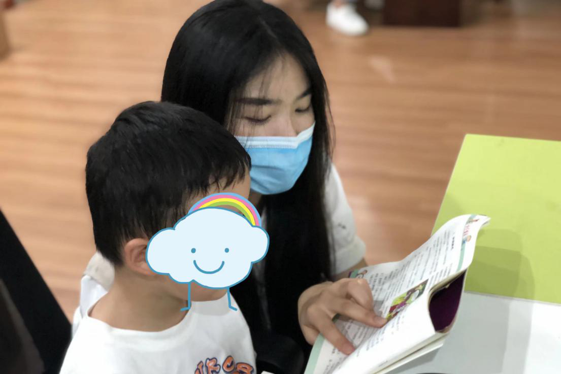 志愿者刘西陪同孩子阅读课外书