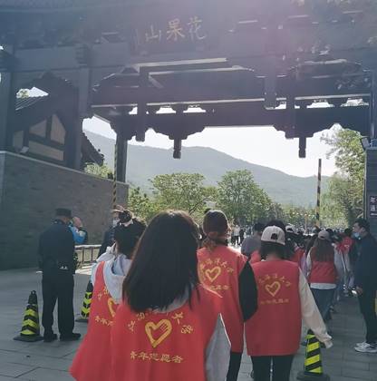 五一假期来临,国家级风景名胜区、旅行区花果山迎来旅游高峰。江苏海洋大学青年志愿者协会众多志愿者放弃休息时间,于5月2日至3日走进花果山景区,为游客们提供志愿服务,那一抹爱心志愿红成为一道美丽的风景线。