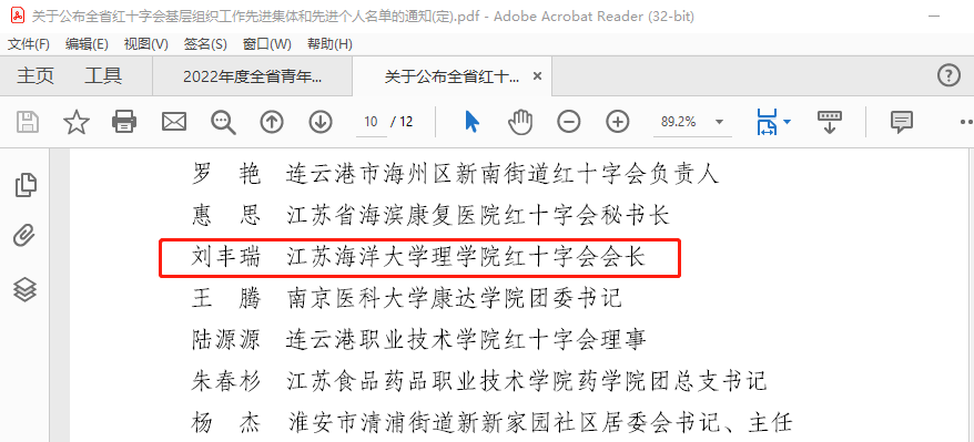 4月29日,江苏省红十字会公布全省红十字会基层组织工作先进集体和先进个人名单,我校理学院团委书记刘丰瑞荣获江苏省红十字会基层组织工作先进个人。