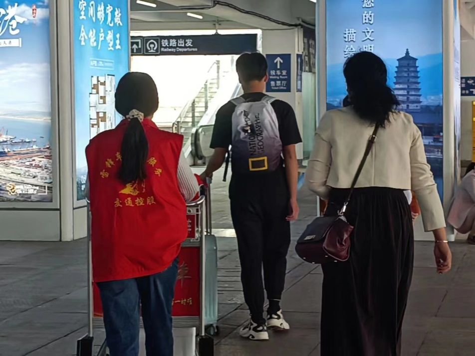 今年中秋、国庆小长假期间,为进一步做好客运疏导工作,保障旅客安全有序出行,平稳地渡过客流高峰,来自我校的35名青年志愿者前往连云港火车站、汽车站为广大旅客提供暖心志愿服务。