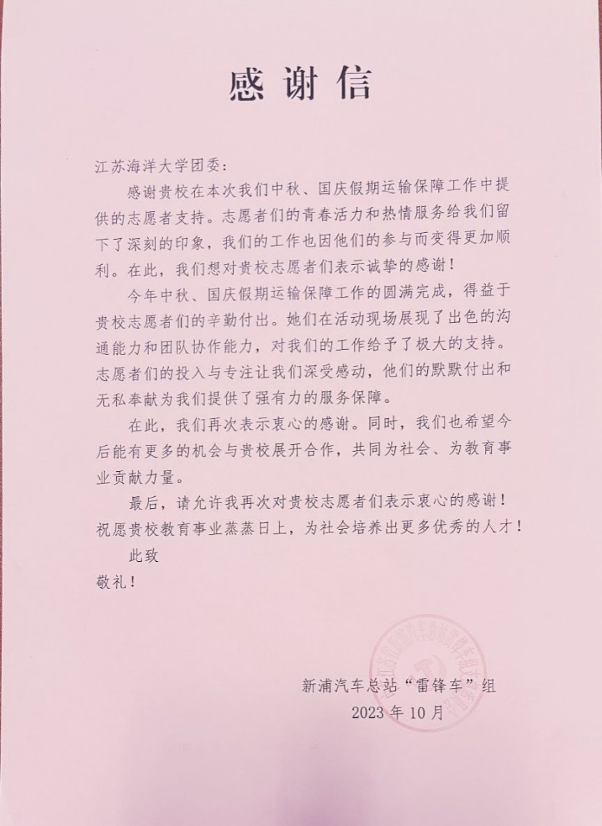 张春军强调,假期运输保障工作的圆满完成,得益于江苏海洋大学志愿者们的辛勤付出,他们在活动现场展现了出色的沟通能力和团队协作能力,他们的默默付出和无私奉献为车站提供了强有力的服务保障。