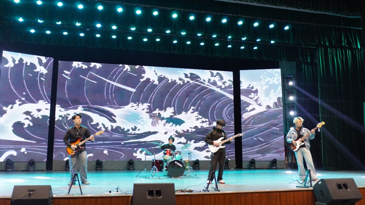 晚会在乌托邦乐队演奏的《云宫迅音》中震撼开场,电子吉他即兴solo与传统民乐碰撞出跨越千年的回响,将《西游记》经典旋律演绎出时代新声,瞬间点燃全场热情。